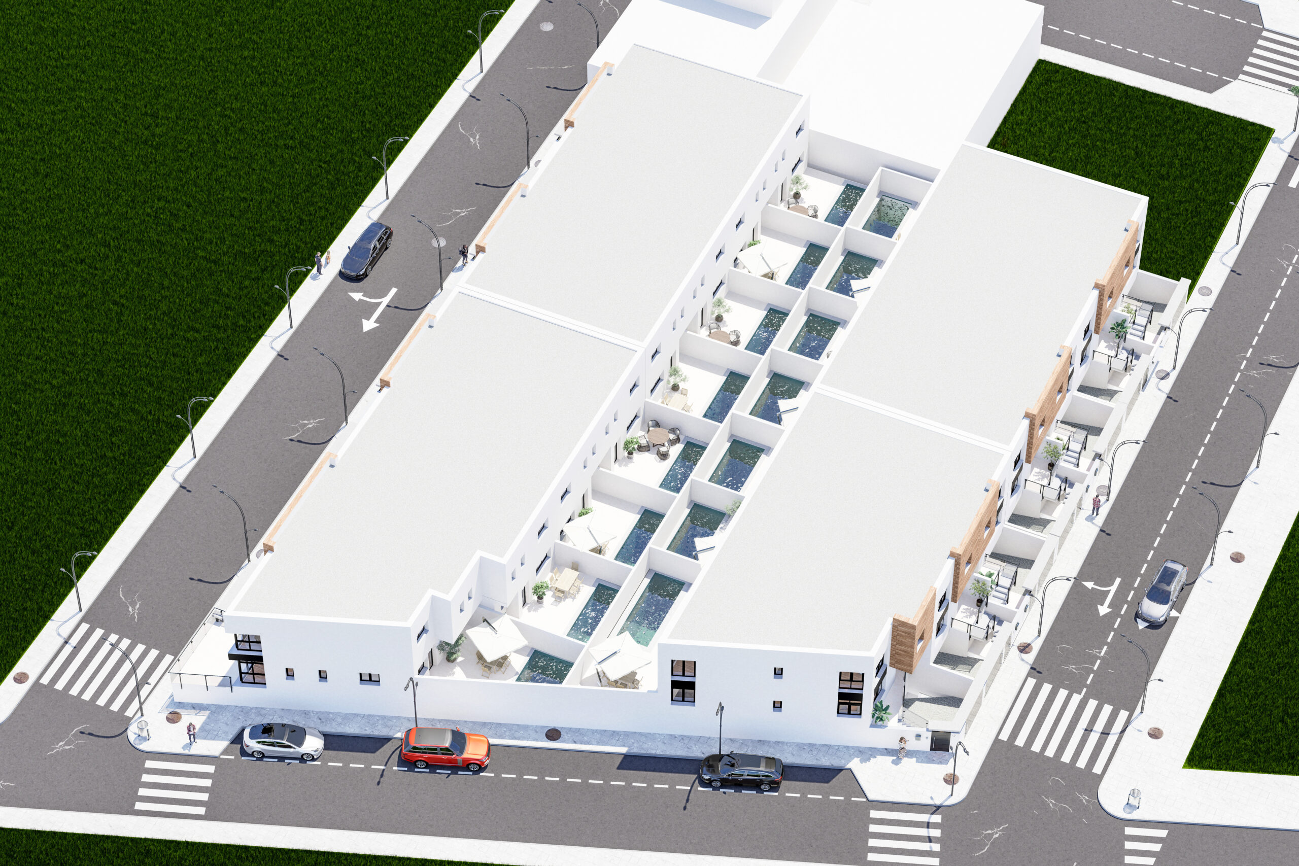 Las viviendas de 4 dormitorios ofrecen una coqueta piscina donde refrescarse los calurosos días veraniegos. Los inmuebles van equipados con suelo radiante-refrescante, sistema de climatización, ACS por aerotermia, tarima flotante AC5, carpintería en pvc, azulejos y sanitarios PORCELANOSA, placas fotovoltaicas … Esto hace que las viviendas alcancen una calificación energética A.